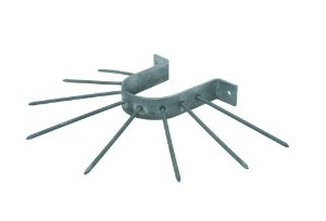 Anti klimbeugel met pennen (type vlak of versprongen) om aan de muur te bevestigen rond een regenpijp (inwendige breedte beugel 105 mm), ter voorkoming van het omhoog klimmen via de regenpijp.