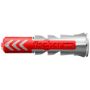 De fischer DuoPower heeft een zeer hoge bevestigingswaarde door de 2 componenten: de grijze component van kwalitatief hoogwaardig nylon activeert, afhankelijk van het bouwmateriaal, automatisch het optimale werkingsprincipe (spreiden, vouwen, knopen) voor het optimaal houvast. De expansievleugels van de rode component ondersteunen de betrouwbare spreiding en biedt extra veiligheid voor de grijze component. De schroef indraaien en tot slot goed „aantrekken“. De bij de kop aangebrachte rand voorkomt dat de plug in het boorgat glijdt. De bijgeleverde schroeven met bolkop zijn perfect op de fischer DuoPower plug afgestemd.