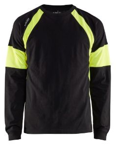 T-shirt met lange mouwen van katoen met gele High Vis-zones voor een goede zichtbaarheid.